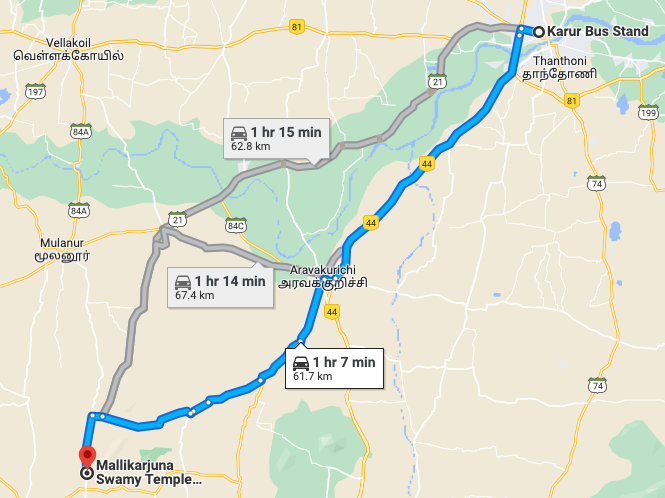 புரிந்து கொள்வதற்கான விரைவான வழி: கோவை/திருப்பூர் -> தாராபுரம் -> கள்ளிமந்தையம் -> கோவில்