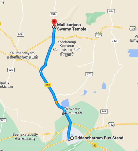 - கள்ளிமந்தையம் பேருந்து நிறுத்தம்: சிங்காநல்லூர் பேருந்து நிலையத்தில் இருந்து மதுரை/திண்டுக்கல்/தேனி அரசு பேருந்துகள் கள்ளிமந்தையம் சிற்றூரை (111 கிமீ) கடக்கும். ஏறும் போது, கள்ளிமந்தையத்தில் பேருந்து நிற்கும். ஏனெனில் ஒரு சில பேருந்துகள் NH வழியாக நகருக்குள் நுழையாது. கள்ளிமந்தையத்திலிருந்து (6.5 கிமீ), கோவிலுக்கு ஆட்டோ/டாக்ஸியில் செல்லவும். ஓட்டுநர்கள் ரூ. ஒரு துளிக்கு 300. FYI, மினி பஸ் அல்லது பஸ் வசதிகள் இல்லை.